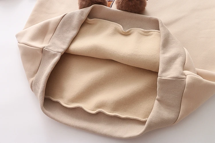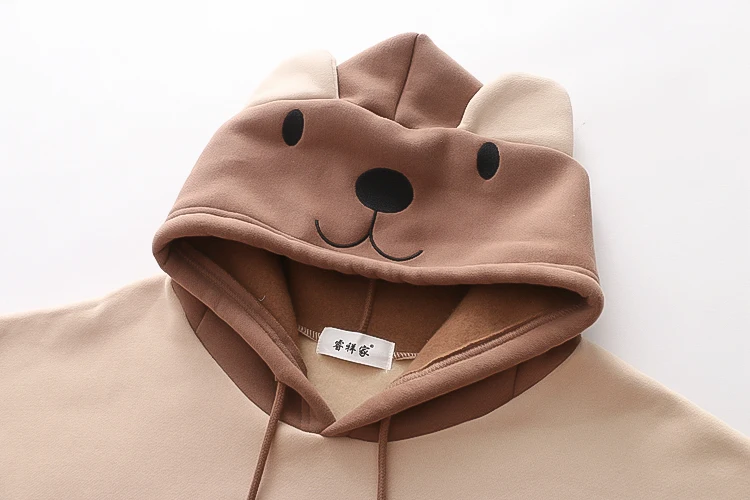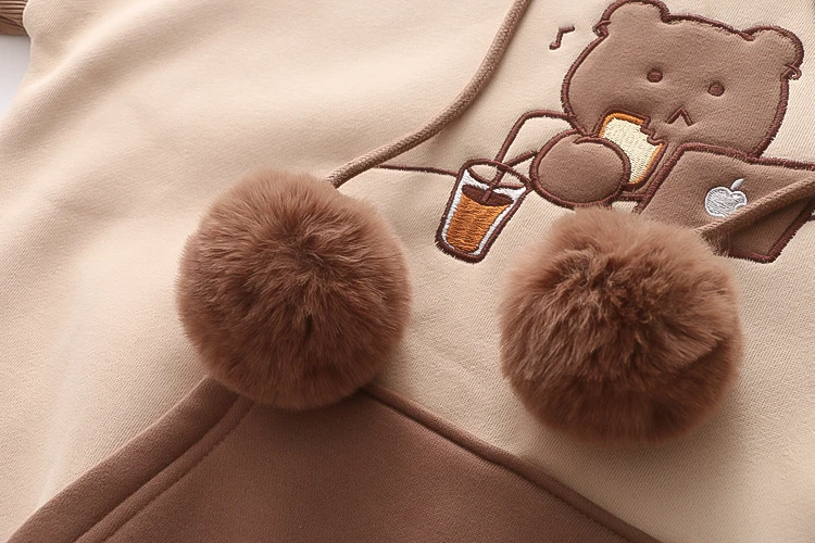 maoxiangshop Women Cute Drawstring Bear Embroidery Fleece Hoodies Winter Korean Fashion Harajuku Hoody Sweatshirt Female Pullover Top