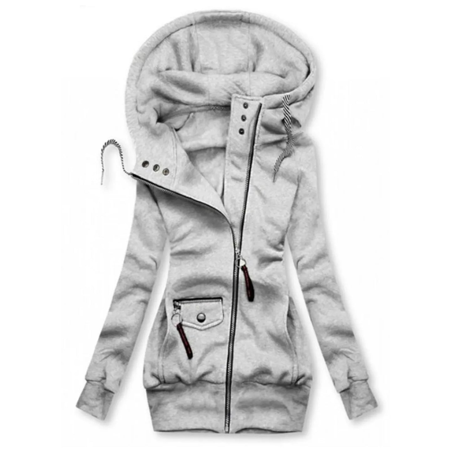 Women Fashion Long Sleeve Drawstring Hooded Slim Jacket Coat Zipper Outerwear