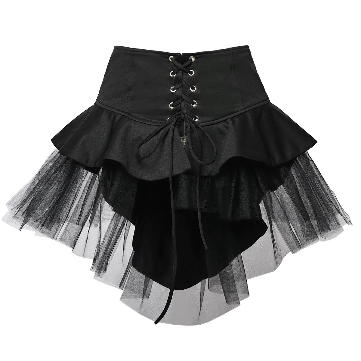 maoxiangshop Women Gothic Punk Corset Skirt Irregular Steampunk Cocktail Mermaid Tulle Belt Skirts
