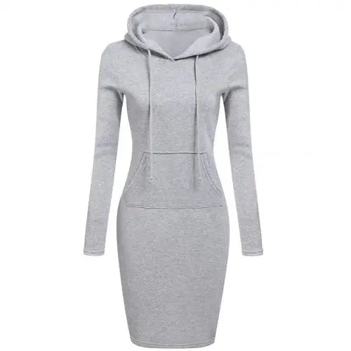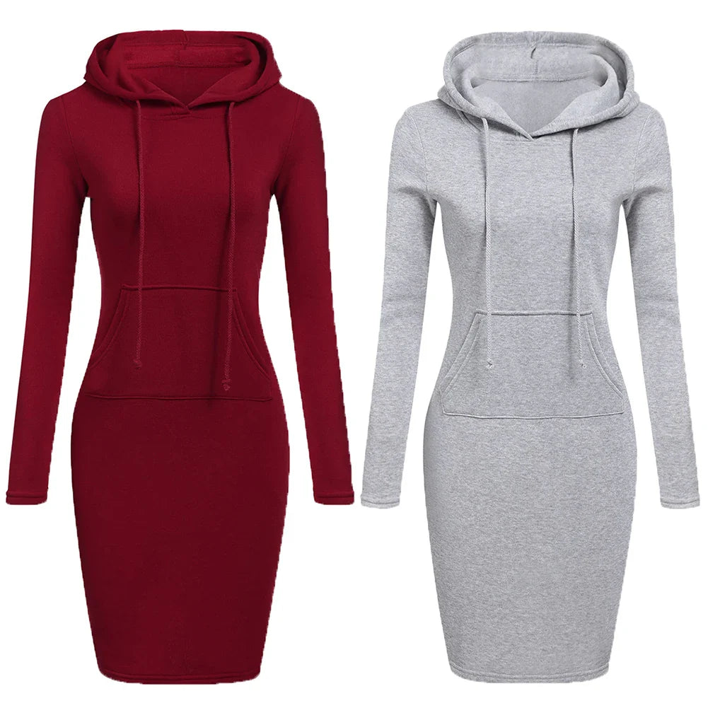 Women Long Sleeve Hooded Dress Solid Color Pockets Skinny Long Sweatshirts Winter Autumn Thermal Casual Hoodies
