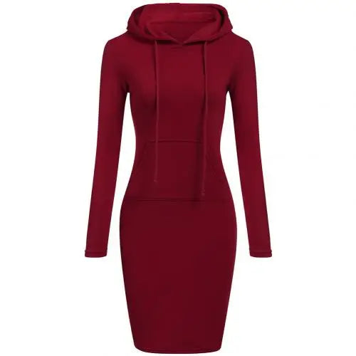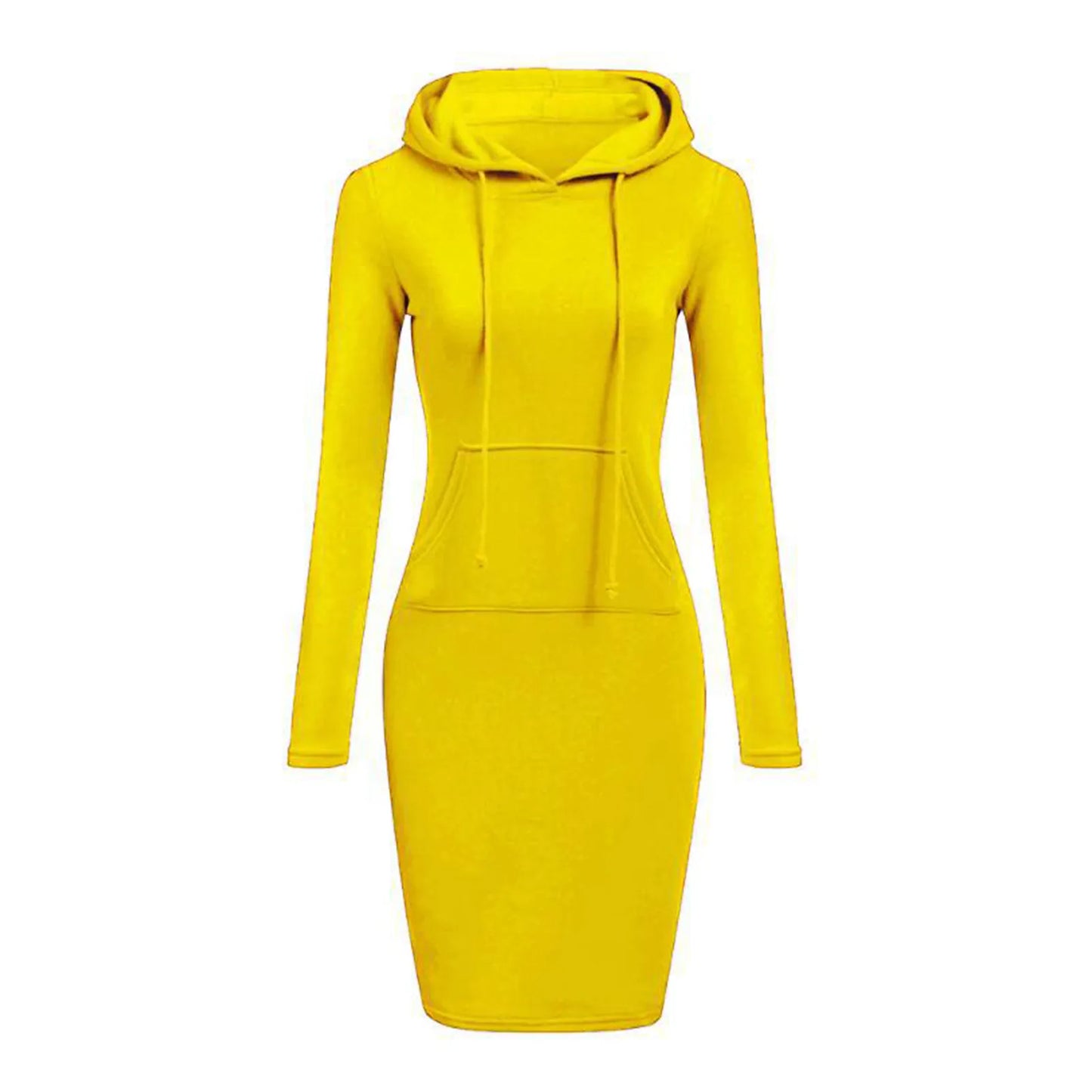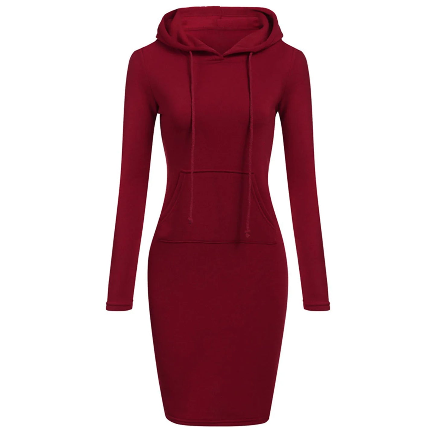 maoxiangshop Women Hoodies Winter Dresses Women Solid Color Long Sleeve Sweatshirts Bodycon Autumn Dress Women Robe Femme Knee Length Dress