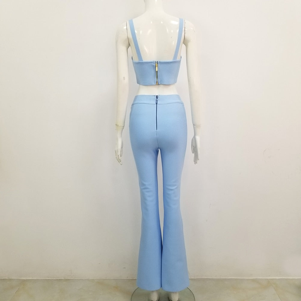 Women Set Party Workout Sport Pants Bra Clothing Short Crop Top High Waist Long Pants 2 Piece Set Suits