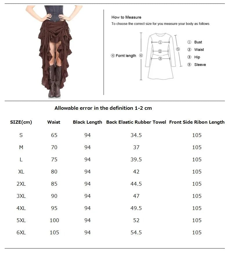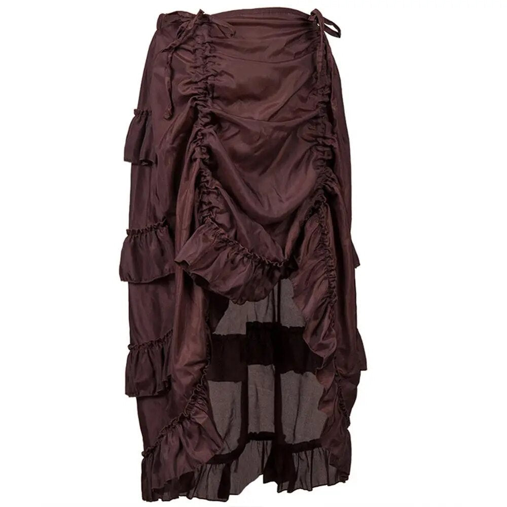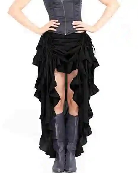 maoxiangshop Women Sexy Gothic Steampunk Victorian Corset Skirt Ruffled Burlesque Asymmetrical Skirt