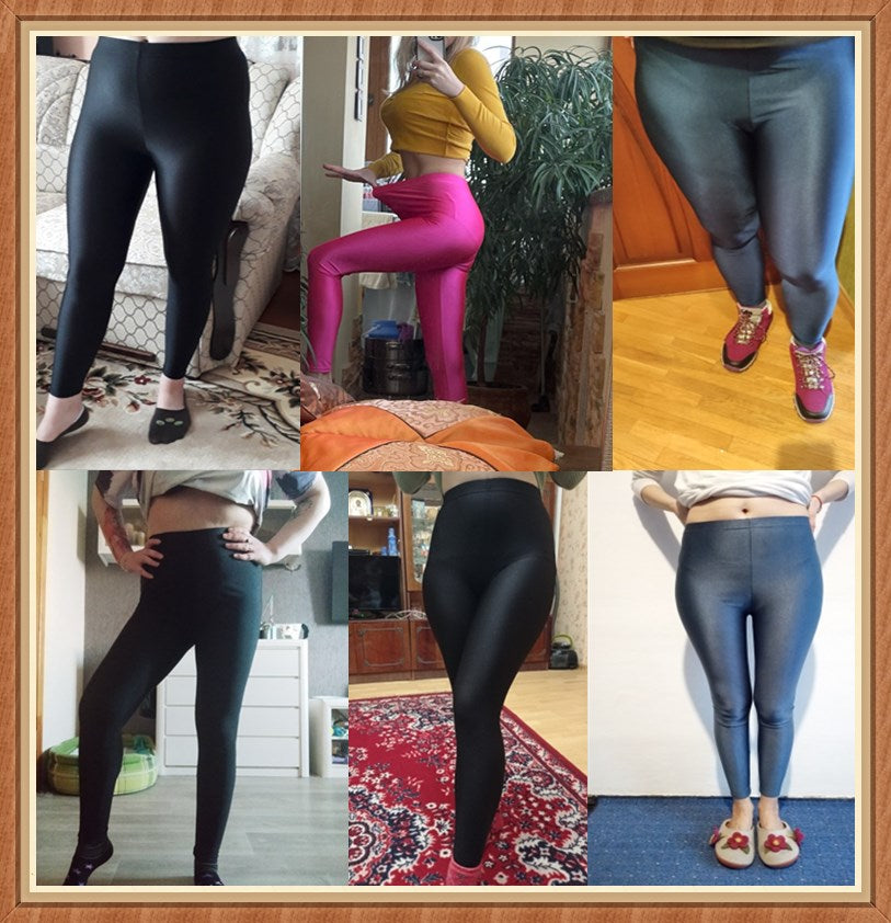 maoxiangshop Women Shiny Gym Pants Fitness Leggings Candy Color Ankle Length Trousers Solid Fluorescent Spandex Elastic New Bottom