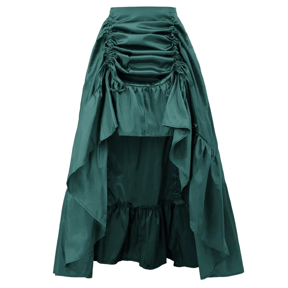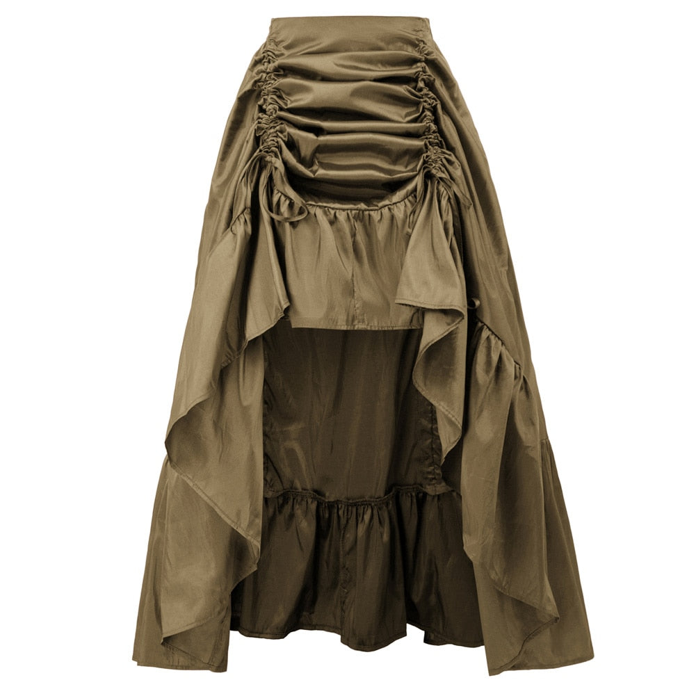 maoxiangshop Women Skirt Retro Ruffle Solid Adjustable High Low Skirt Elastic Waist Gothic Skirts Party Club Renaissance Steampunk Skirt Long