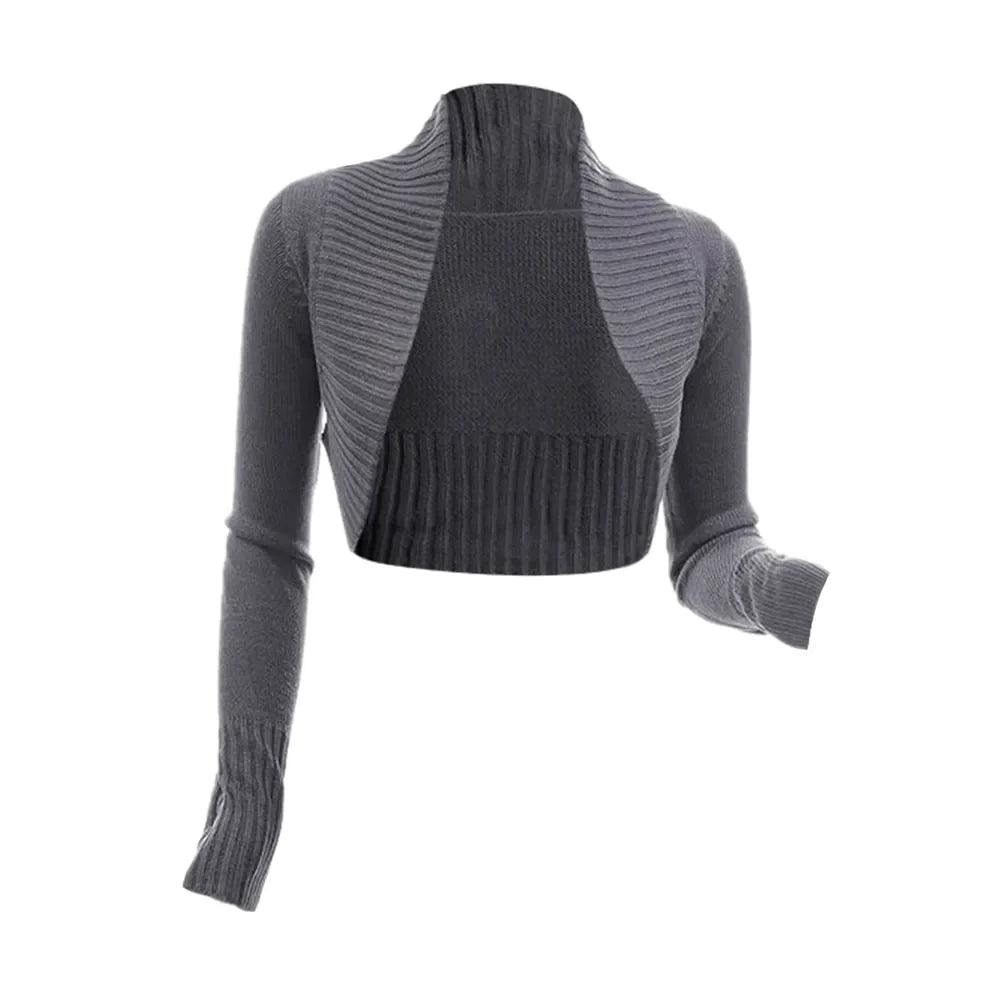 maoxiangshop Women Solid Color Fashion Cropped Sweater Warm Shrug Bolero Sweater Long Sleeve Open Front Cardigan For Women