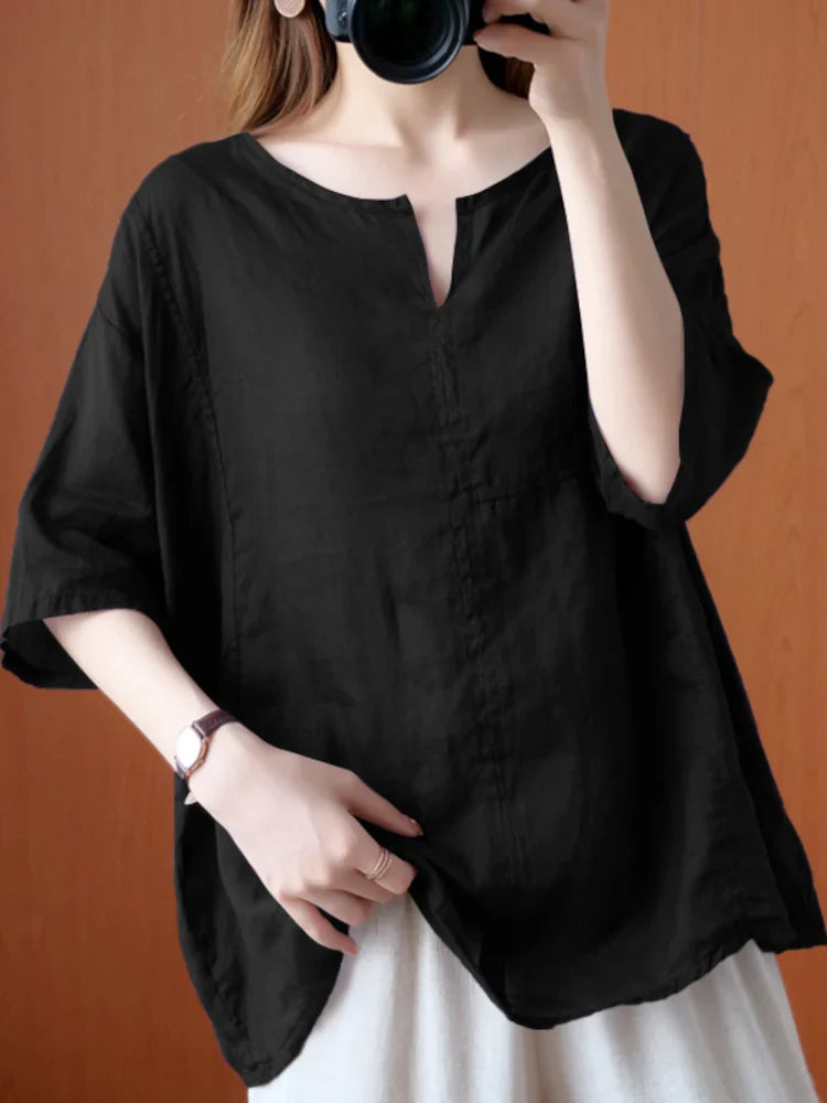 maoxiangshop Women Summer Blouse Casual Oversized Chemise Fashion Solid Vintage Half Sleeve Blusas Female O Neck Cotton Top Tunic