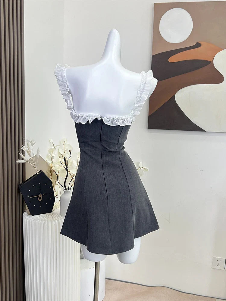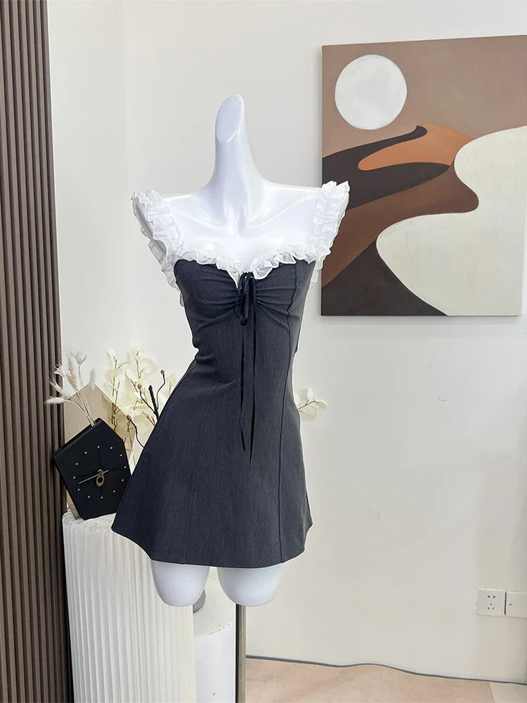 maoxiangshop Women Summer Off Shoulder Mini Dress Sexy Elegant Vintage Fashion Party Club Sleeveless Grey Dress Female One Piece Frocks