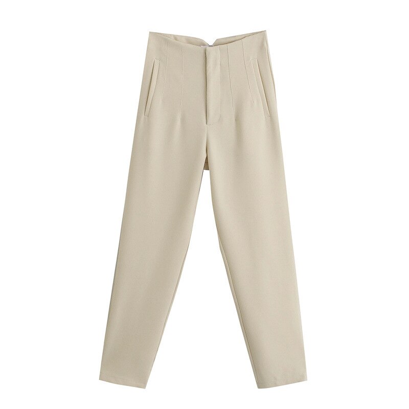 Women Trousers Suits High Waisted Pant Spring Fashion Office Lady Beige Elegant Casual Pants Pantalon Pour Femme