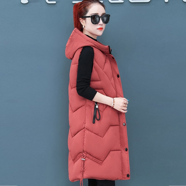 Women Vests Coat Long Warm New women's Down Cotton Autumn Winter Wear Female Outerwear Hooded Sleeveless Female Waistcoat