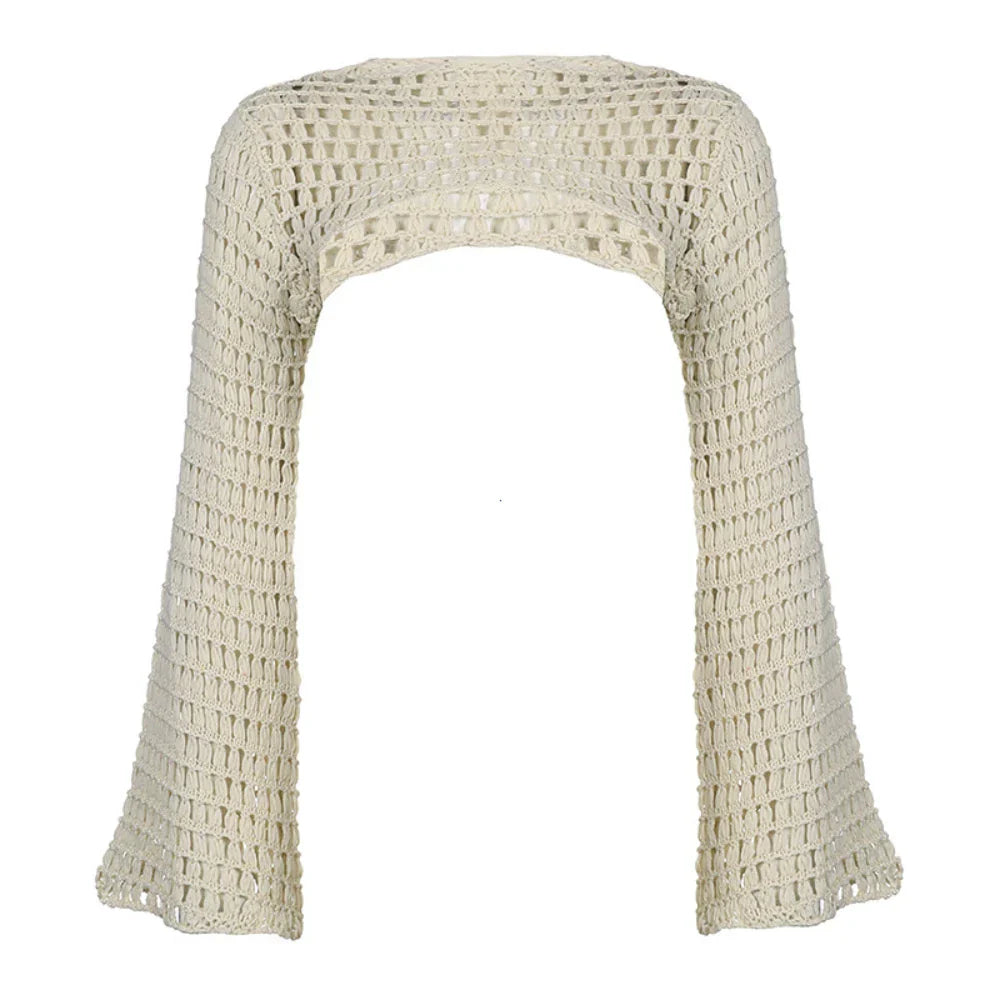Women Y2k Crochet Knit Hollow Out Crop Top Long Flared Sleeve Shrug Sweater Mesh Cover Ups Cardigan Streetwear Pullover Women
