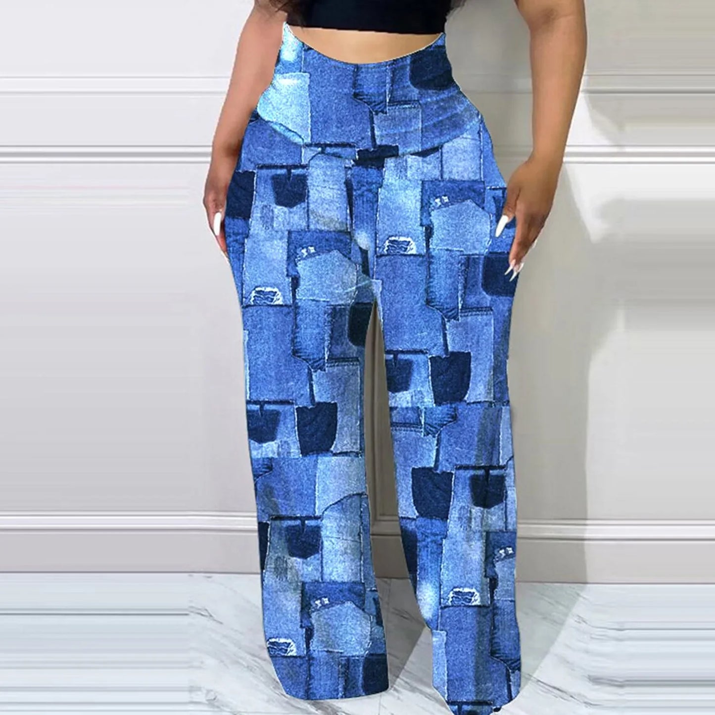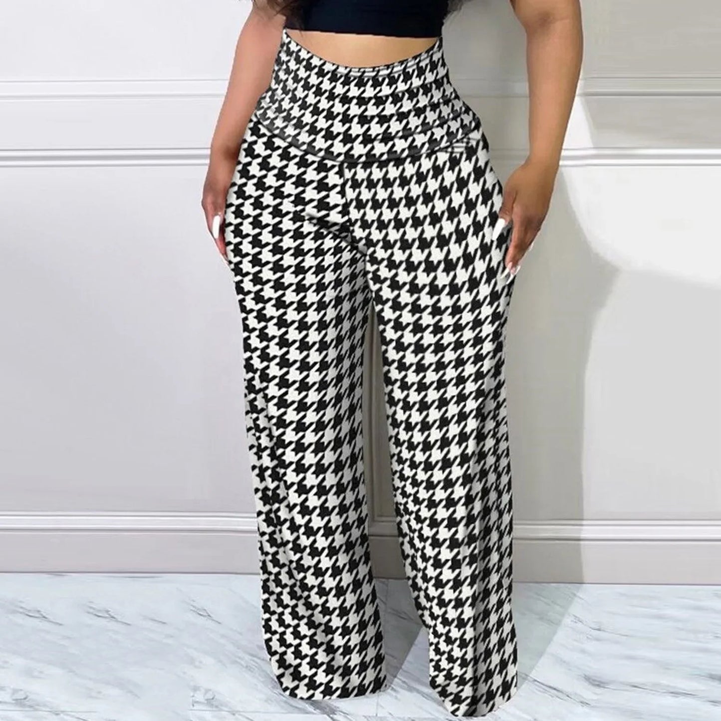 maoxiangshop Women's Pants Autumn Fashion Plaid Print Casual High Waist Daily Long Pants