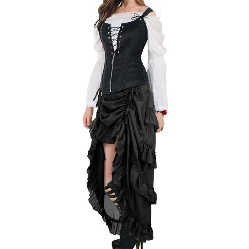 maoxiangshop Women's Retro Skirt Modern Dance Hip Hop Street Dance Performance Dress Halloween Folk Dance Costumes Female Pirate Skirt