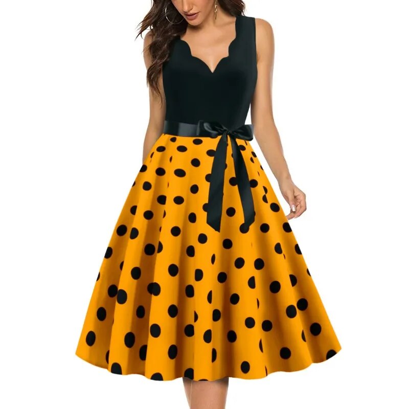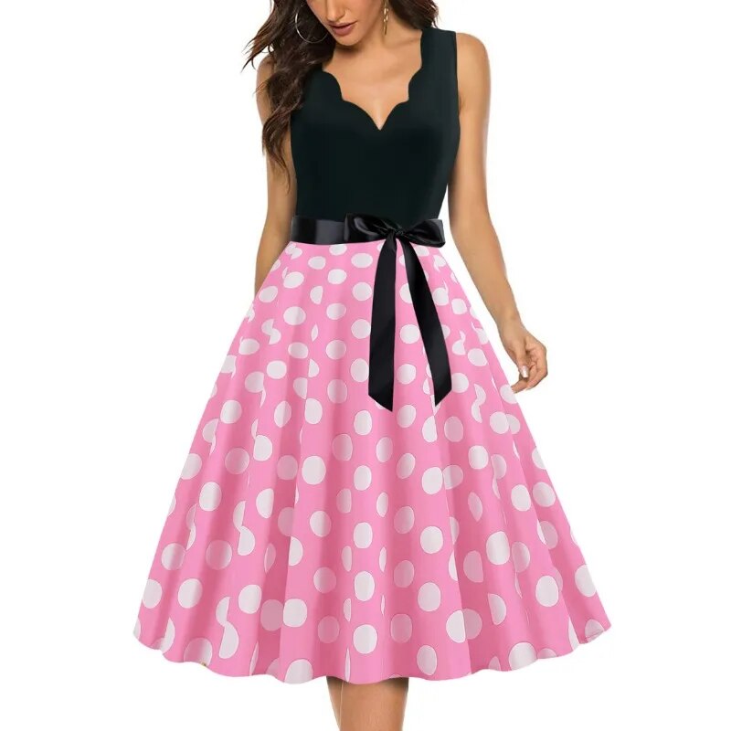 maoxiangshop Womens Retro Summer Dresses Robe Vintage Pinup 1950s 60s Rockabilly Sexy V-Neck Polka Dot Print Party Dress Vestido S-3XL