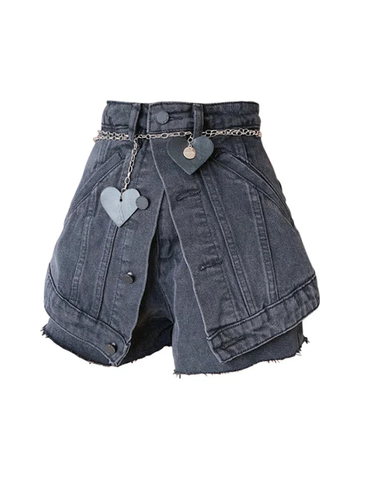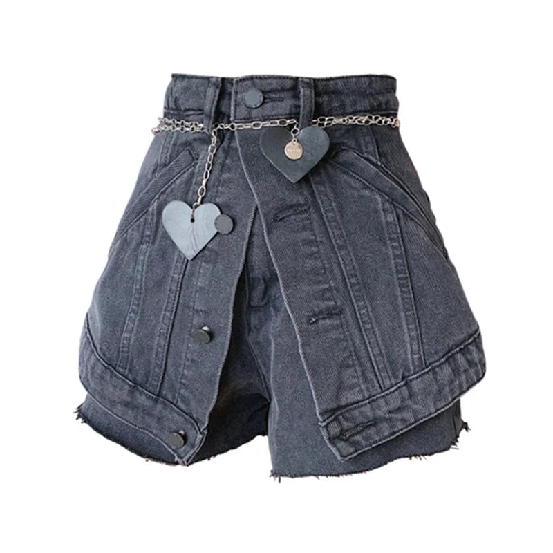 maoxiangshop Women's Short Jeans Vintage Hight Waist Y2K Harajuku Casual Black Denim Shorts With Chain Hot Summer Vacation Streetwear Bottoms