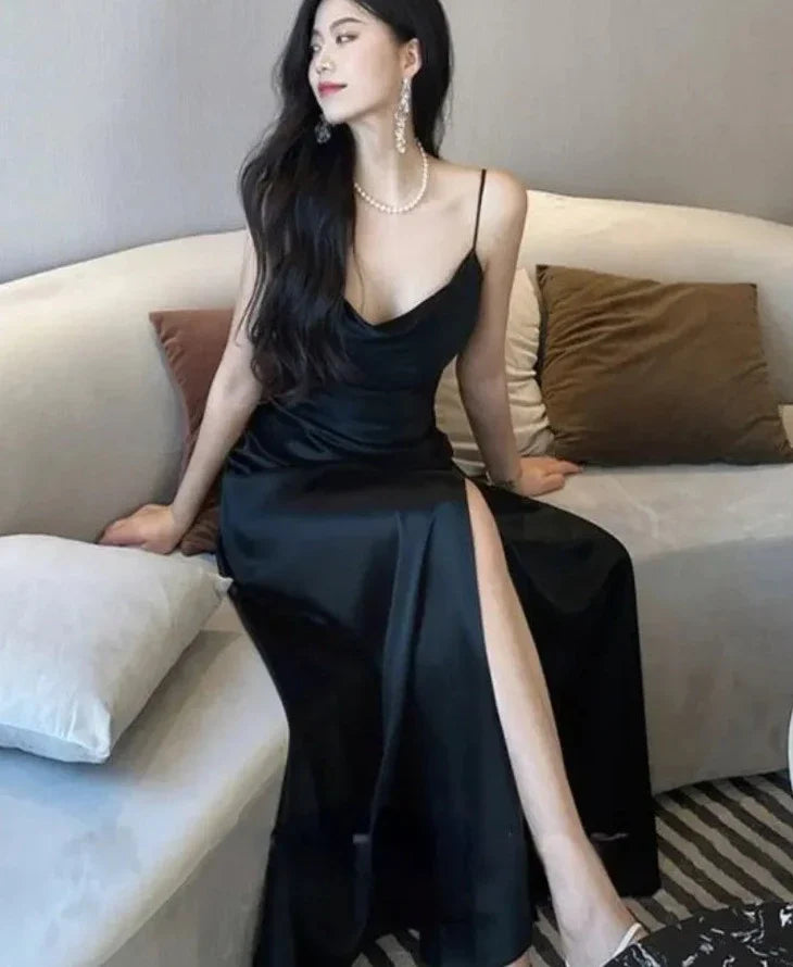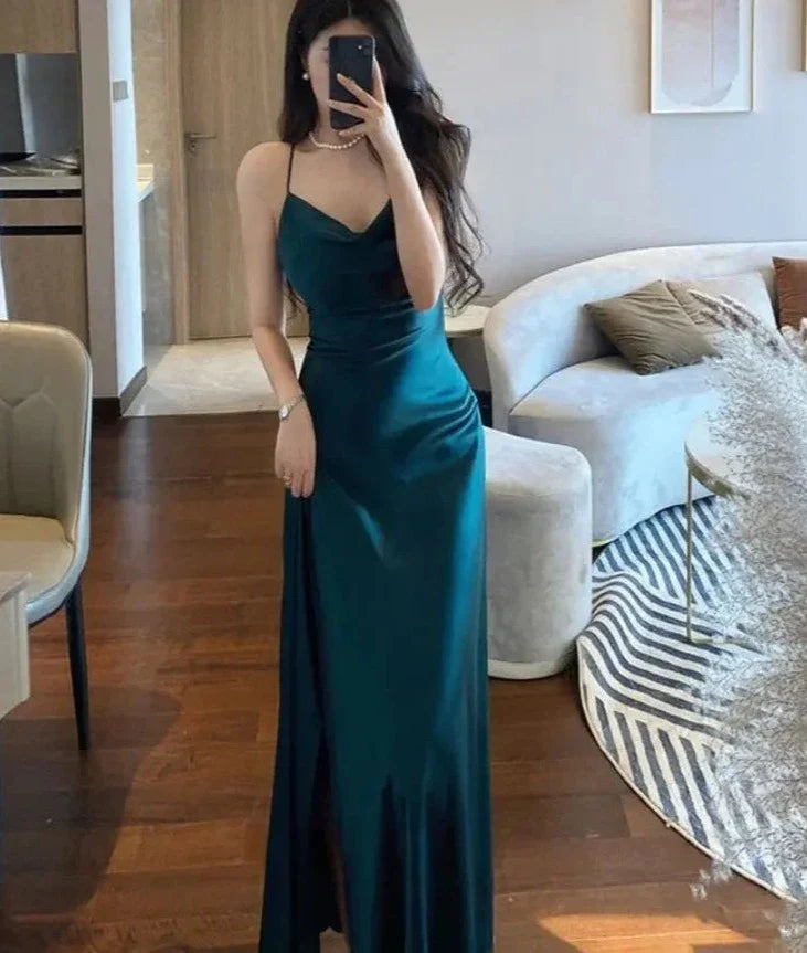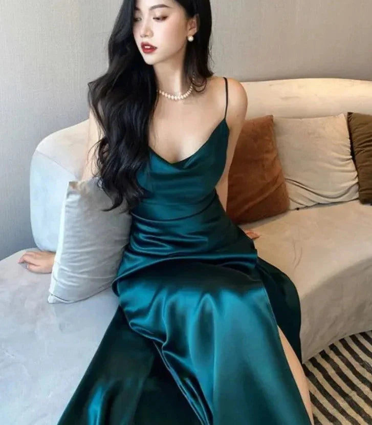 maoxiangshop Women's Summer Dress Solid Satin New in Dresses Slim Fit Open Back Spaghetti Strap Party Dresses Sensual Sexy Dress for Women