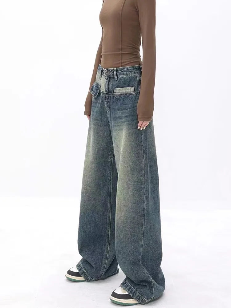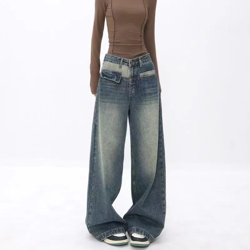 Y2k Streetwear Loose Denim Trousers Female Gyaru Clothes Vintage Wide Leg Baggy New Jean Women Autumn High Waist Pants Woman