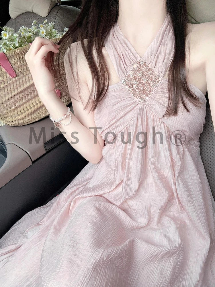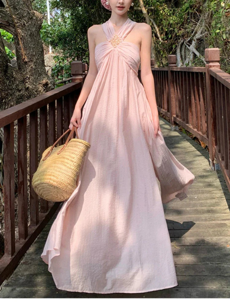 Y2k Vintage Chic French Style Midi Dress Women Princess Elegant Sweet One Piece Dress Female High Street Slim Dress Summer