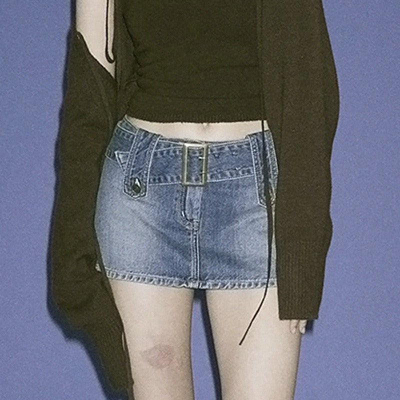 Y2K Women's Jeans Mini Skirts Low Waist Belt Blue Denim Skirt Woman Korean Straight Distressed Bottoms Mujer Harajuku