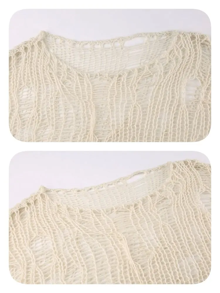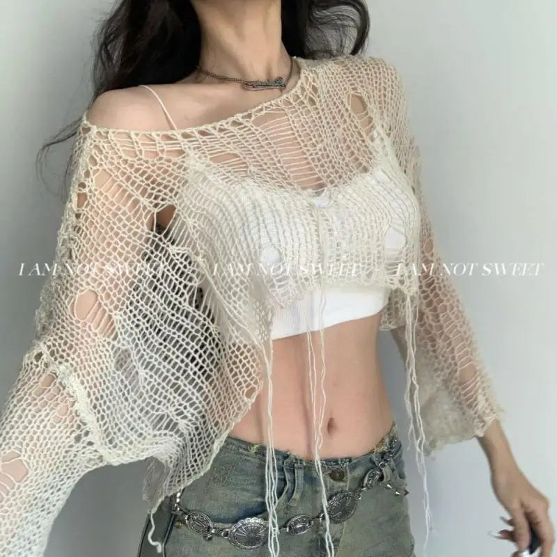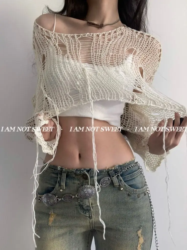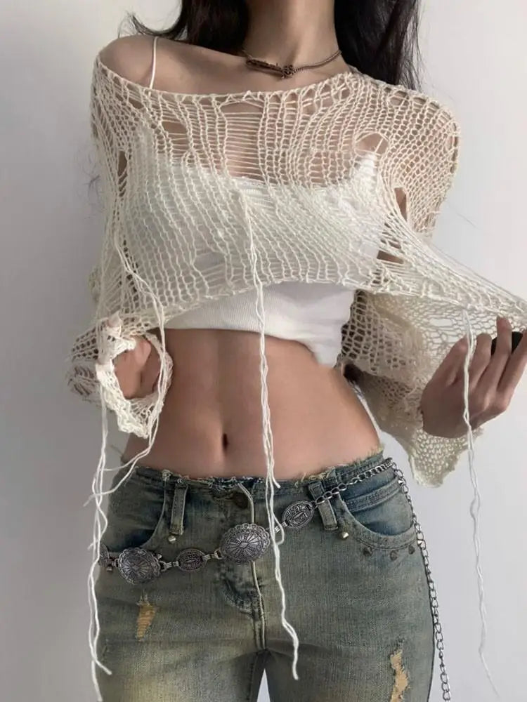 Knitted Tops Long Sleeve Sweater Women Clothes Korean Fashion Hollow Out Crop Top Pullovers Knit Jumper Grunge Y2k Chic