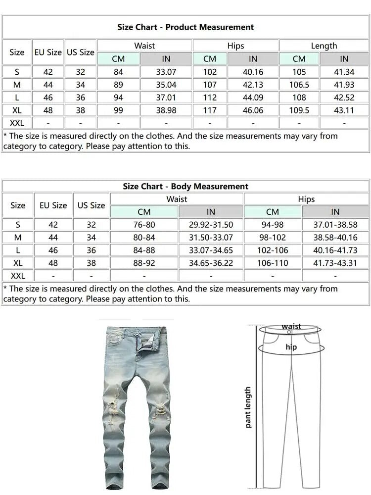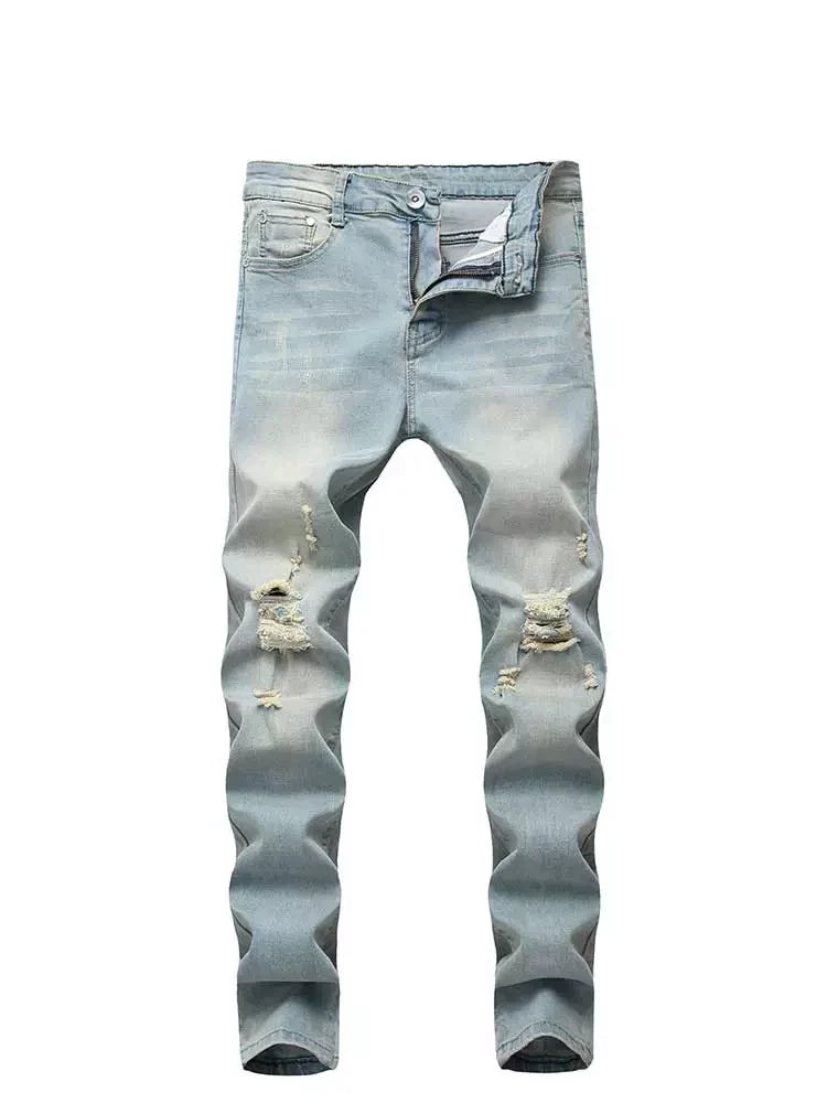 maoxiangshop Men's Jeans Solid Faded Ripped Frayed Denim Jeans Mid-waist Slim Fitted Pants Ankle-length Zipper Trousers with Pocket