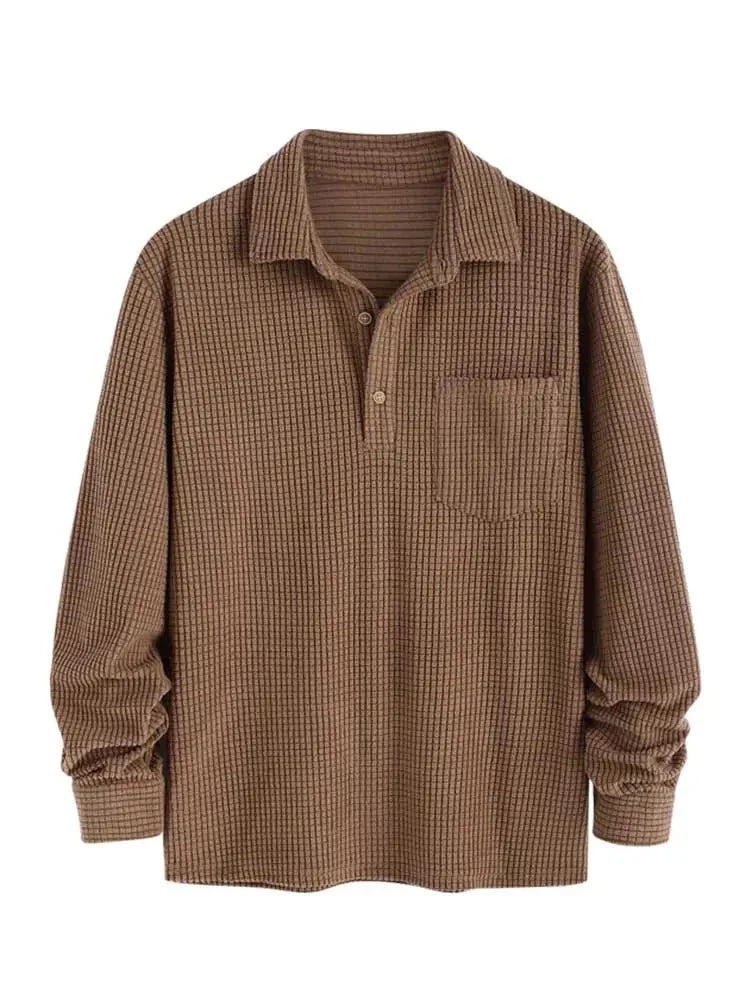 maoxiangshop Men's Two Piece Set Solid Polar Fleece Turn-down Collar Long Sleeves Shirt with Drawstring Straight Pants Set Z5107952
