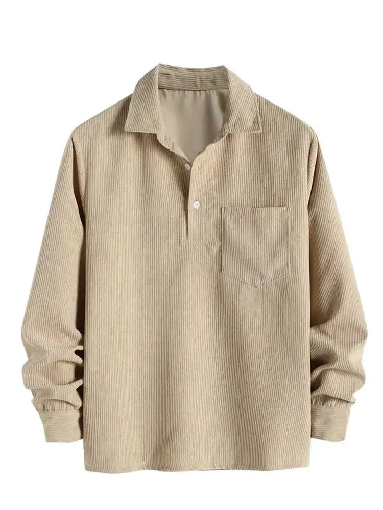 maoxiangshop Shirts for Men Corduroy Long Sleeves Shirt Half Button Solid Blouses Fall Spring Streetwear Overshirts Tops with Pocket